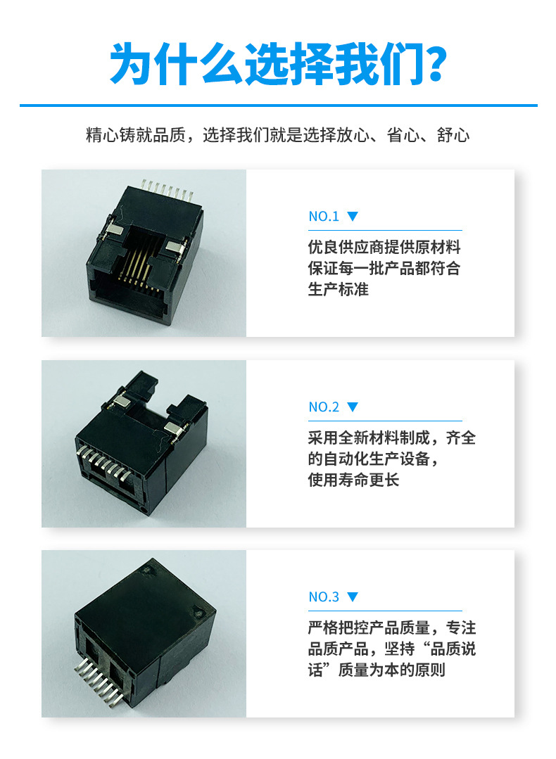 本公司提供優(yōu)良的RJ11、RJ12電話插接件、RJ45網(wǎng)絡(luò)插接件,耐環(huán)境RJ45防水連接器,防水電連接器及其它精密連接器,產(chǎn)品應(yīng)用于網(wǎng)絡(luò)通訊(電腦主板,網(wǎng)絡(luò)交換機(jī),路由器,電信設(shè)備)、惡劣環(huán)境下數(shù)據(jù)傳輸與控制及電源信號傳輸與控制(戶外LED顯示屏、機(jī)器控制、工業(yè)程序控制等)