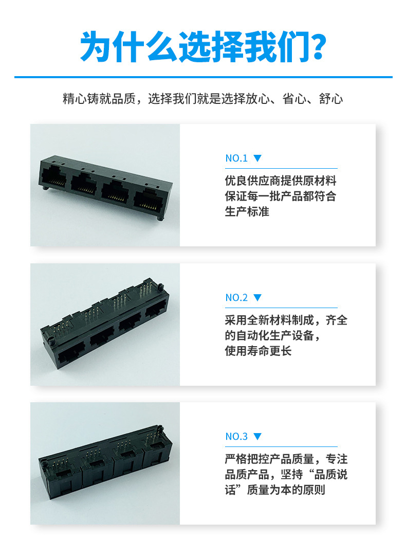 本公司提供優(yōu)良的RJ11、RJ12電話插接件、RJ45網絡插接件,耐環(huán)境RJ45防水連接器,防水電連接器及其它精密連接器,產品應用于網絡通訊(電腦主板,網絡交換機,路由器,電信設備)、惡劣環(huán)境下數(shù)據(jù)傳輸與控制及電源信號傳輸與控制(戶外LED顯示屏、機器控制、工業(yè)程序控制等)