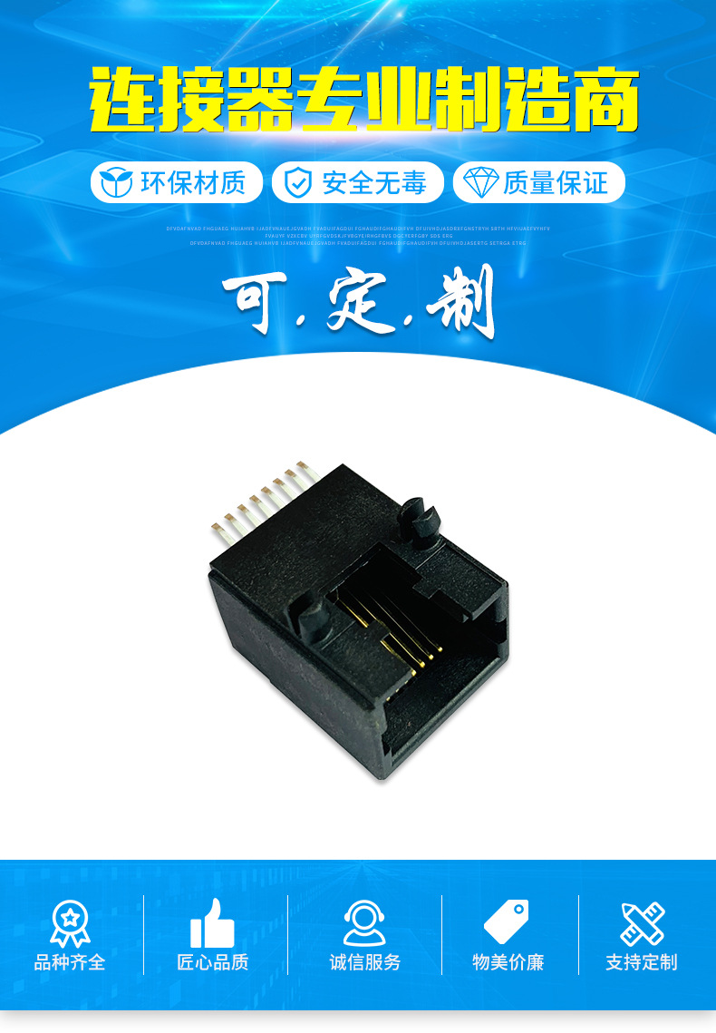 本公司提供優(yōu)良的RJ11、RJ12電話插接件、RJ45網(wǎng)絡(luò)插接件,耐環(huán)境RJ45防水連接器,防水電連接器及其它精密連接器,產(chǎn)品應(yīng)用于網(wǎng)絡(luò)通訊(電腦主板,網(wǎng)絡(luò)交換機,路由器,電信設(shè)備)、惡劣環(huán)境下數(shù)據(jù)傳輸與控制及電源信號傳輸與控制(戶外LED顯示屏、機器控制、工業(yè)程序控制等)