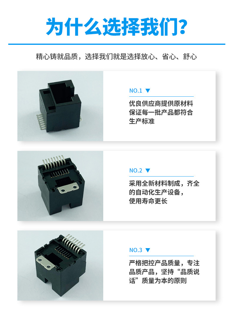 本公司提供優(yōu)良的RJ11、RJ12電話插接件、RJ45網(wǎng)絡插接件,耐環(huán)境RJ45防水連接器,防水電連接器及其它精密連接器,產(chǎn)品應用于網(wǎng)絡通訊(電腦主板,網(wǎng)絡交換機,路由器,電信設備)、惡劣環(huán)境下數(shù)據(jù)傳輸與控制及電源信號傳輸與控制(戶外LED顯示屏、機器控制、工業(yè)程序控制等)