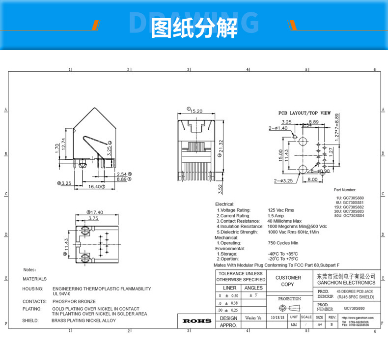 45度屏蔽RJ45母座