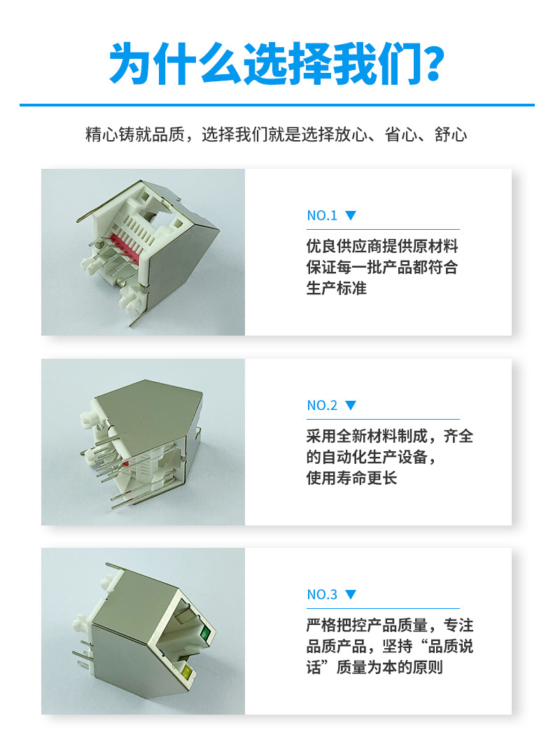 本公司提供優(yōu)良的RJ11、RJ12電話插接件、RJ45網(wǎng)絡(luò)插接件,耐環(huán)境RJ45防水連接器,防水電連接器及其它精密連接器,產(chǎn)品應(yīng)用于網(wǎng)絡(luò)通訊(電腦主板,網(wǎng)絡(luò)交換機,路由器,電信設(shè)備)、惡劣環(huán)境下數(shù)據(jù)傳輸與控制及電源信號傳輸與控制(戶外LED顯示屏、機器控制、工業(yè)程序控制等)
