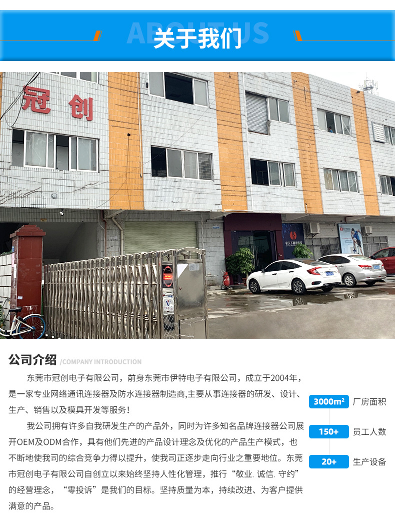 本公司提供優(yōu)良的RJ11、RJ12電話插接件、RJ45網(wǎng)絡(luò)插接件,耐環(huán)境RJ45防水連接器,防水電連接器及其它精密連接器,產(chǎn)品應(yīng)用于網(wǎng)絡(luò)通訊(電腦主板,網(wǎng)絡(luò)交換機,路由器,電信設(shè)備)、惡劣環(huán)境下數(shù)據(jù)傳輸與控制及電源信號傳輸與控制(戶外LED顯示屏、機器控制、工業(yè)程序控制等)