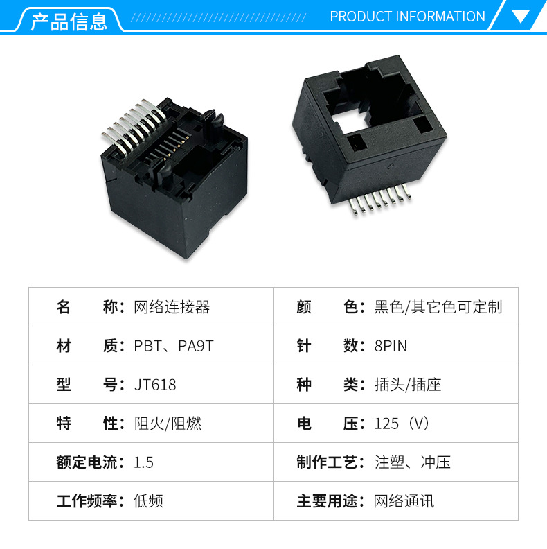 本公司提供優(yōu)良的RJ11、RJ12電話插接件、RJ45網(wǎng)絡(luò)插接件,耐環(huán)境RJ45防水連接器,防水電連接器及其它精密連接器,產(chǎn)品應(yīng)用于網(wǎng)絡(luò)通訊(電腦主板,網(wǎng)絡(luò)交換機(jī),路由器,電信設(shè)備)、惡劣環(huán)境下數(shù)據(jù)傳輸與控制及電源信號傳輸與控制(戶外LED顯示屏、機(jī)器控制、工業(yè)程序控制等)